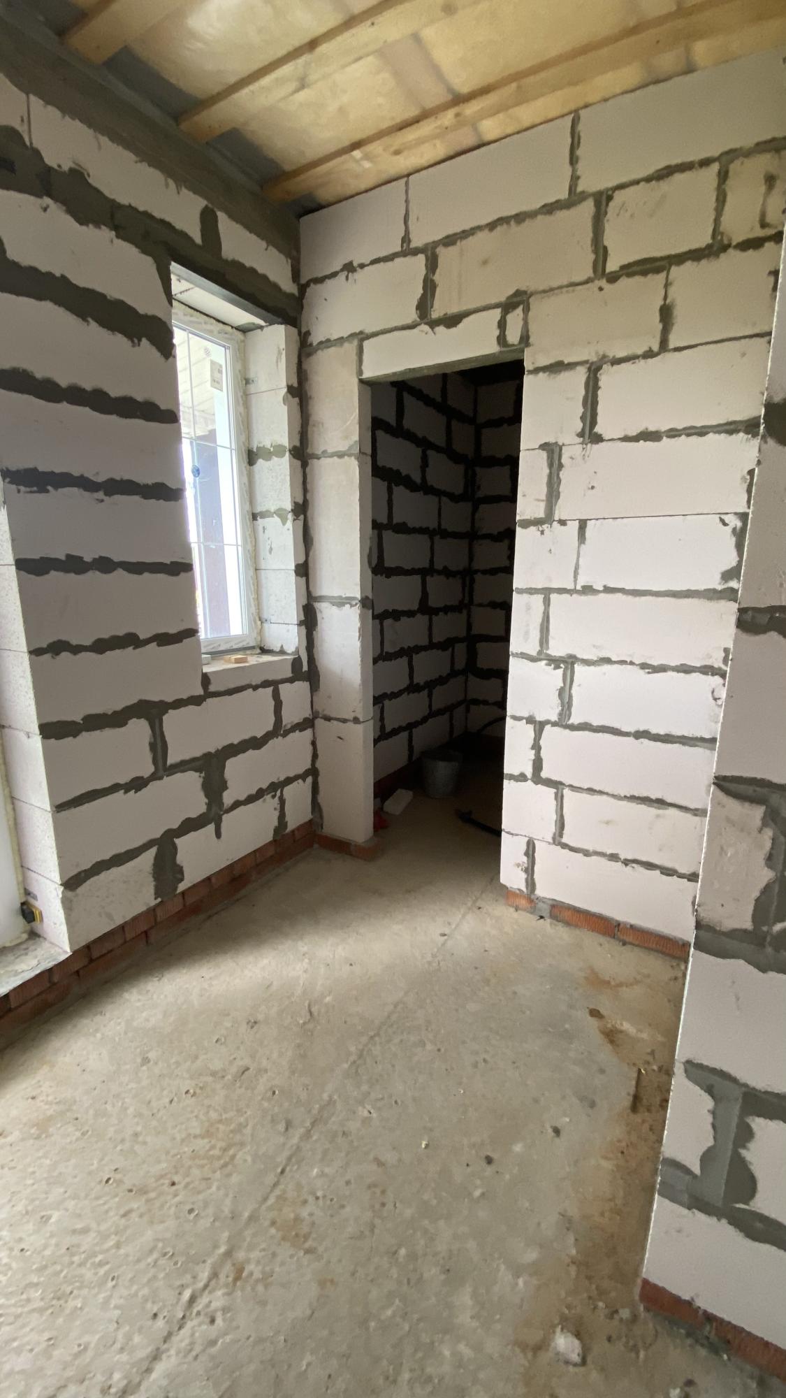 Стены – газобетонные блоки, толщина внешних стен 30см + 10см утеплитель.